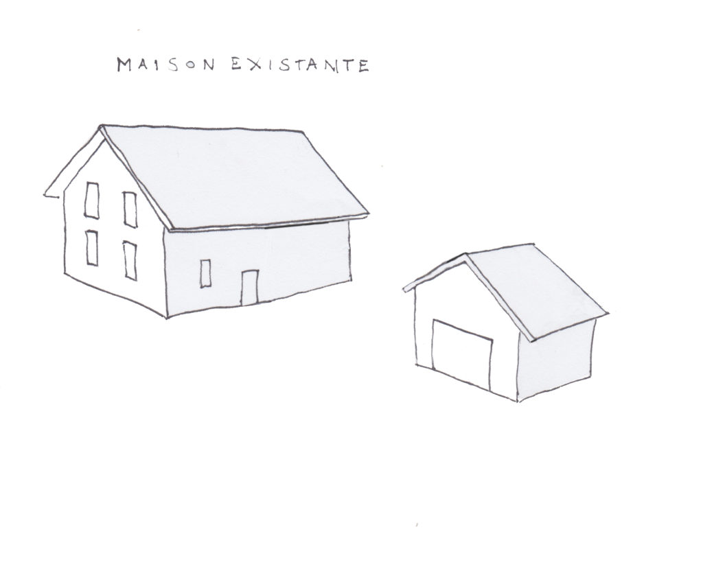 Le programme du projet se caractérise par sa simplicité, à savoir la création d’un petit studio indépendant à coté d’une maison existante et son garage.