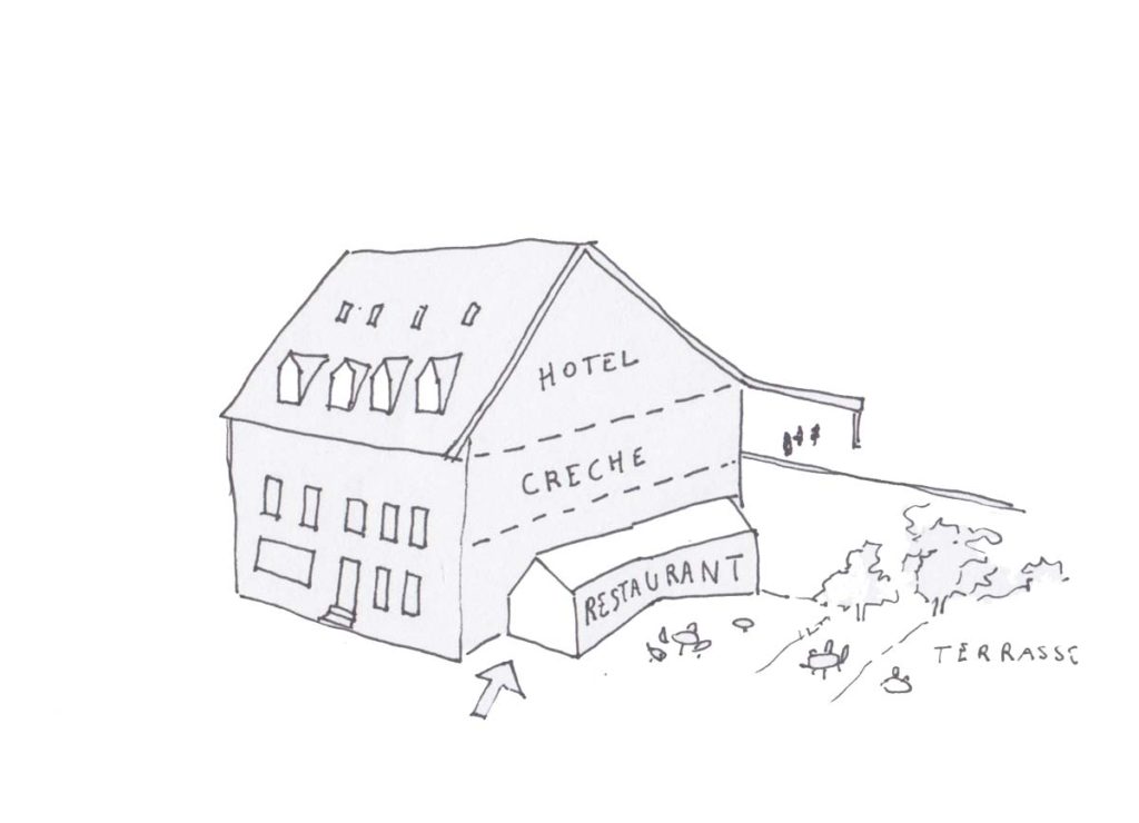 L’enjeu principal de la rénovation de l’auberge communale de Mex réside dans la superposition de programmes divers et indépendants : restaurant, crèche et chambres d’hôtes